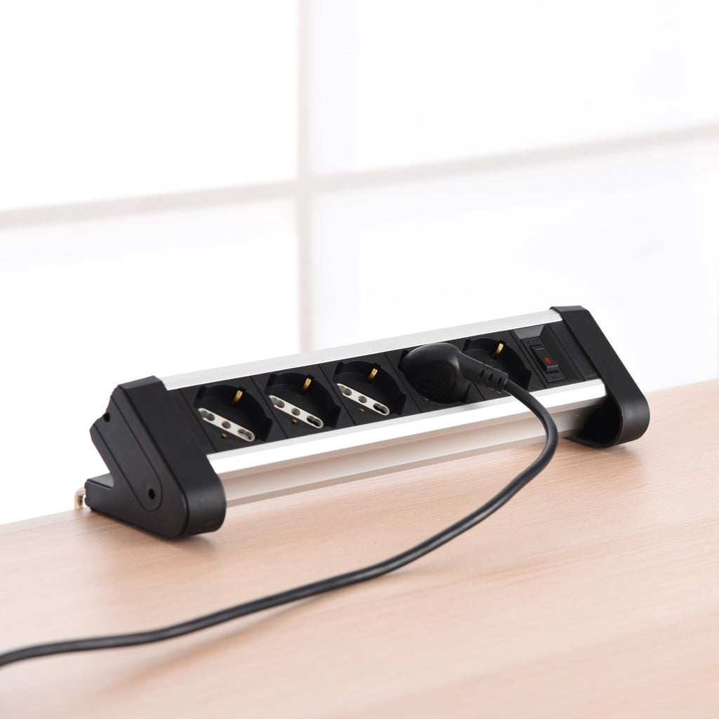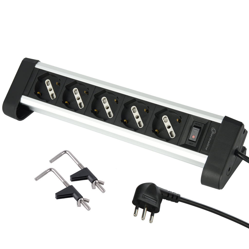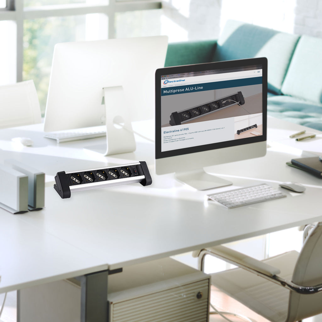 - Multipresa da Tavolo con Corpo in Alluminio con 5 Prese Polivalenti (Schuko + 10/16A) con indicatore luminoso ON/OFF