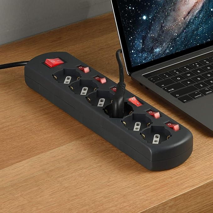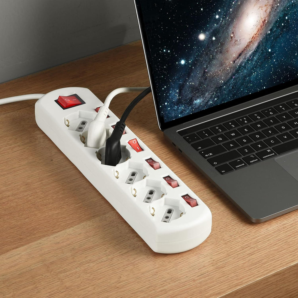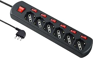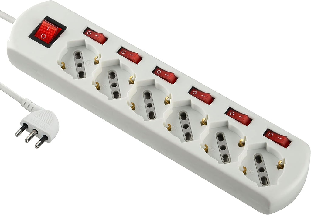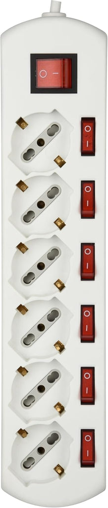 Multipresa 6 posti universali con 6 interruttori indipendenti + 1 generale